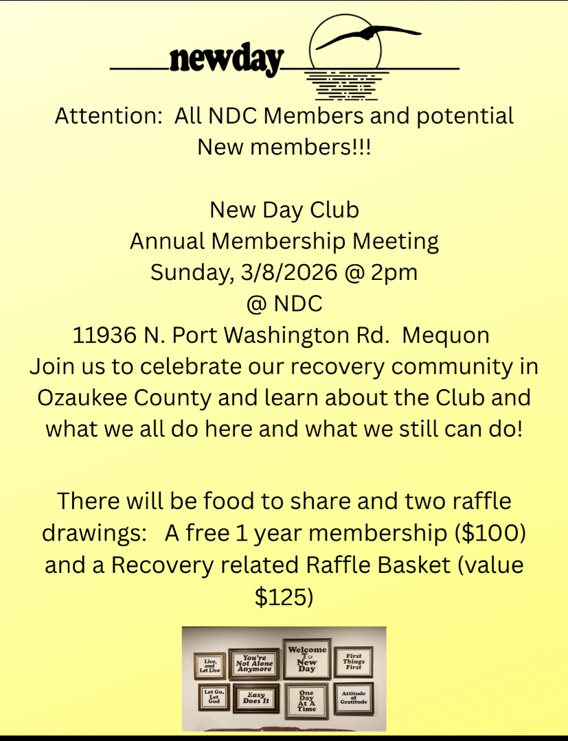 Do you have a New Day Club mug? Do you use it at the Club? If not, think about taking it home and using it there. We have an accumulation of mugs not being used and would like to make space. We appreciate your cooperation.
